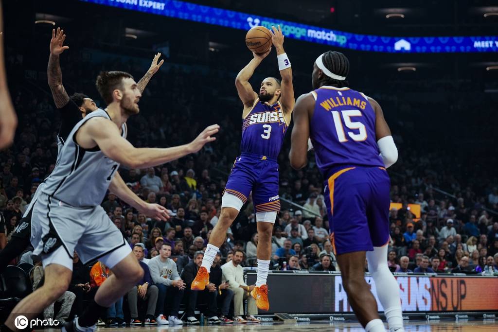 第三节,太阳队的表现起初显得有所下滑,分差逐渐被拉大到10分。然而,随着时间的推进,太阳队逐渐找回状态,展开反击,不仅追平了比分,还成功反超7分。尽管马刺队在后期努力缩小分差,但这一节结束时,太阳以86-80领先。布克在此节中贡献了11分,其中包括两记三分球,而马刺的瓦塞尔则有13分进账,并投中3记三分球。
